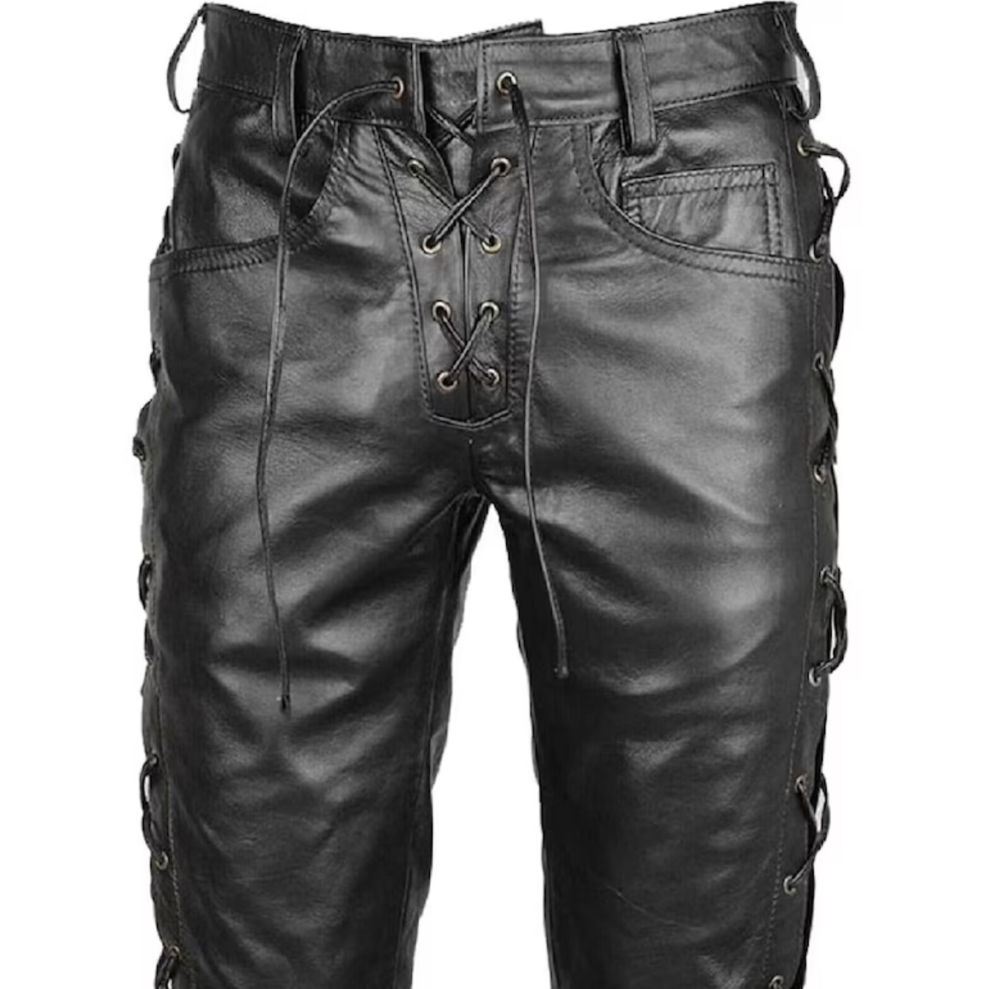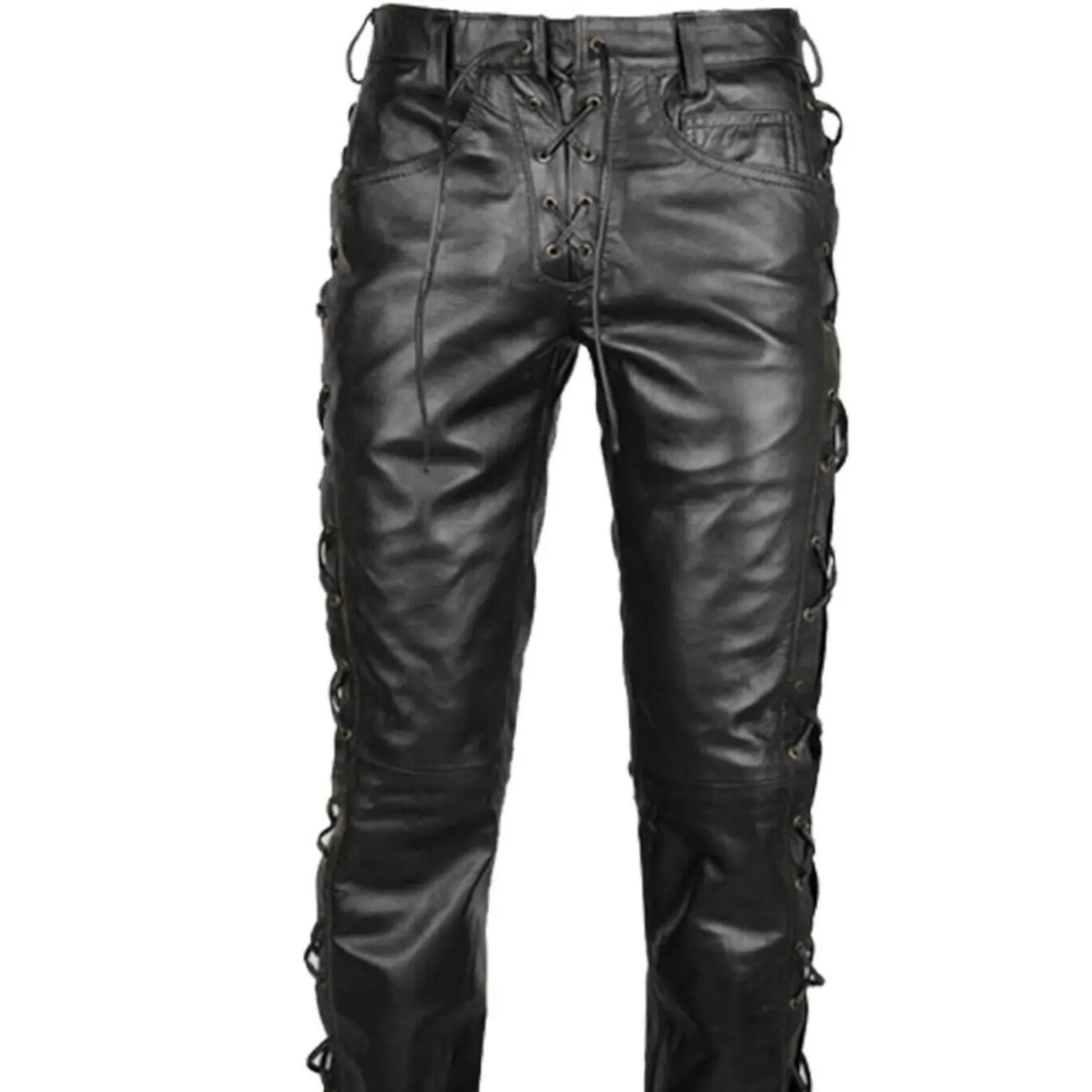 Genuine Black Leather Biker Pants, Side and Front Laces Up Bikers Jeans, Motorcycle Leather Trousers, New Lace up Style, Gift for Riders Gift for Racers Real Black Leather Pant Gift for Bikers Handmade Pant Motorbike Clothing Motorcycle Pants