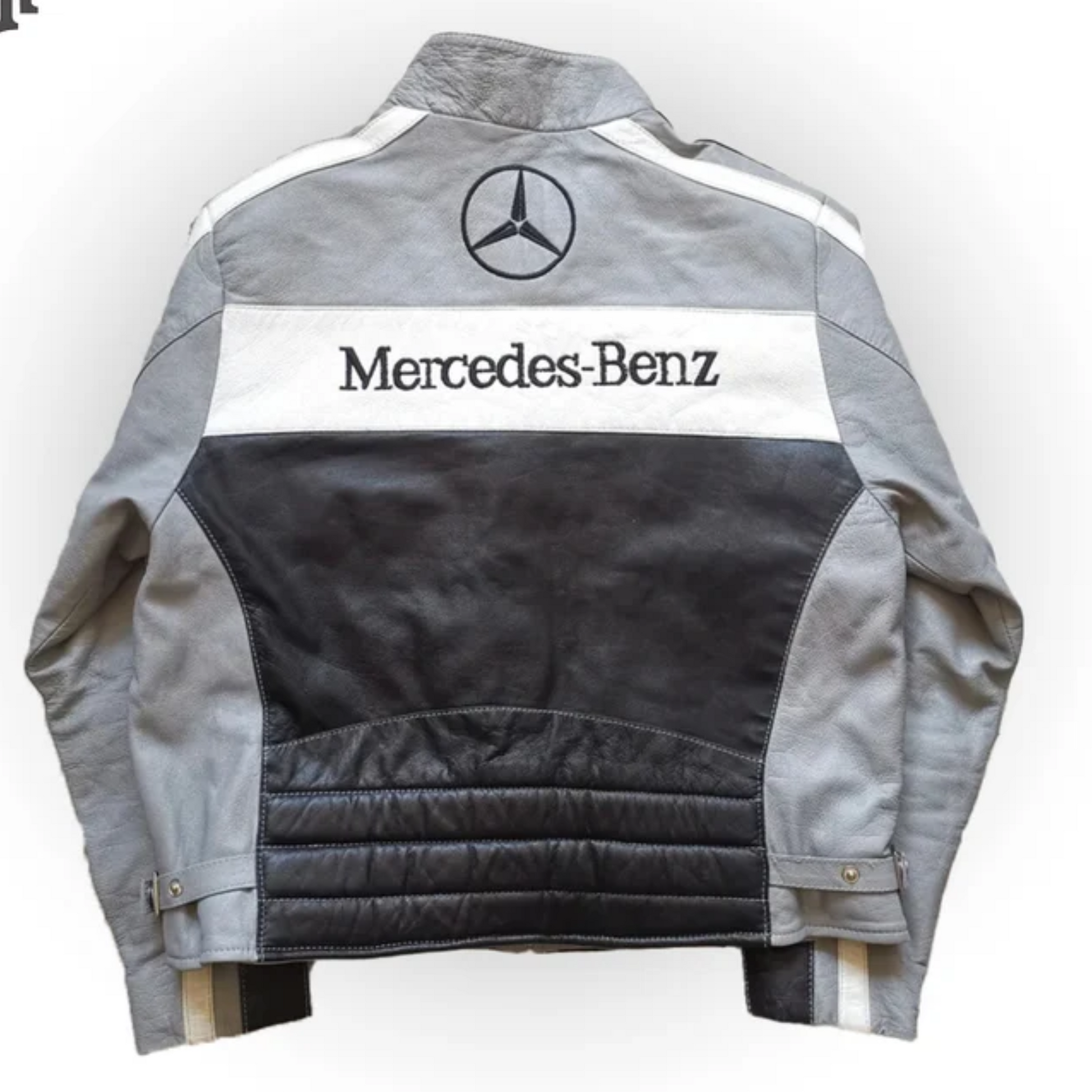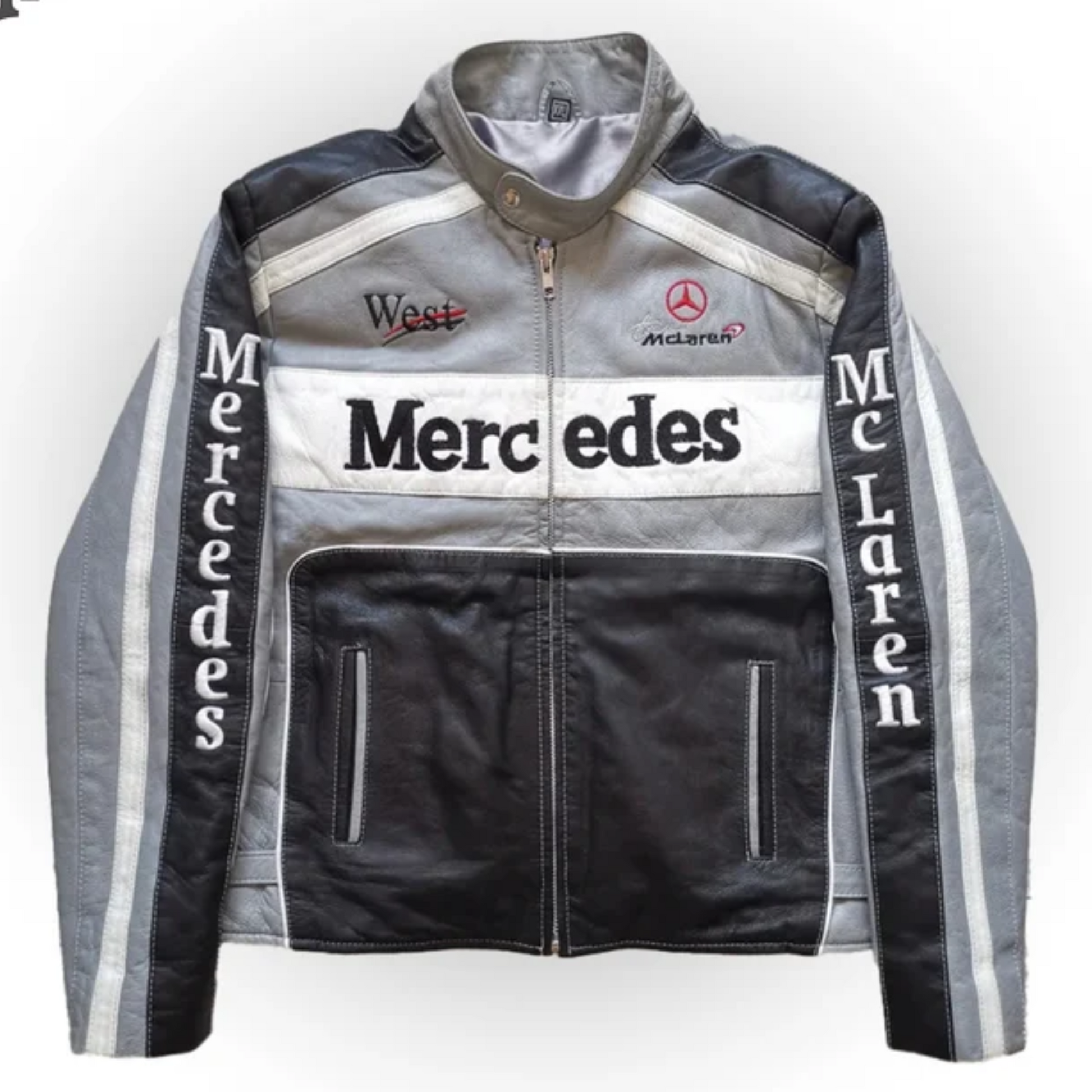 Men's Grey Mercedes Benz F1 Racing Leather Jacket: Stylish Motorsport Apparel